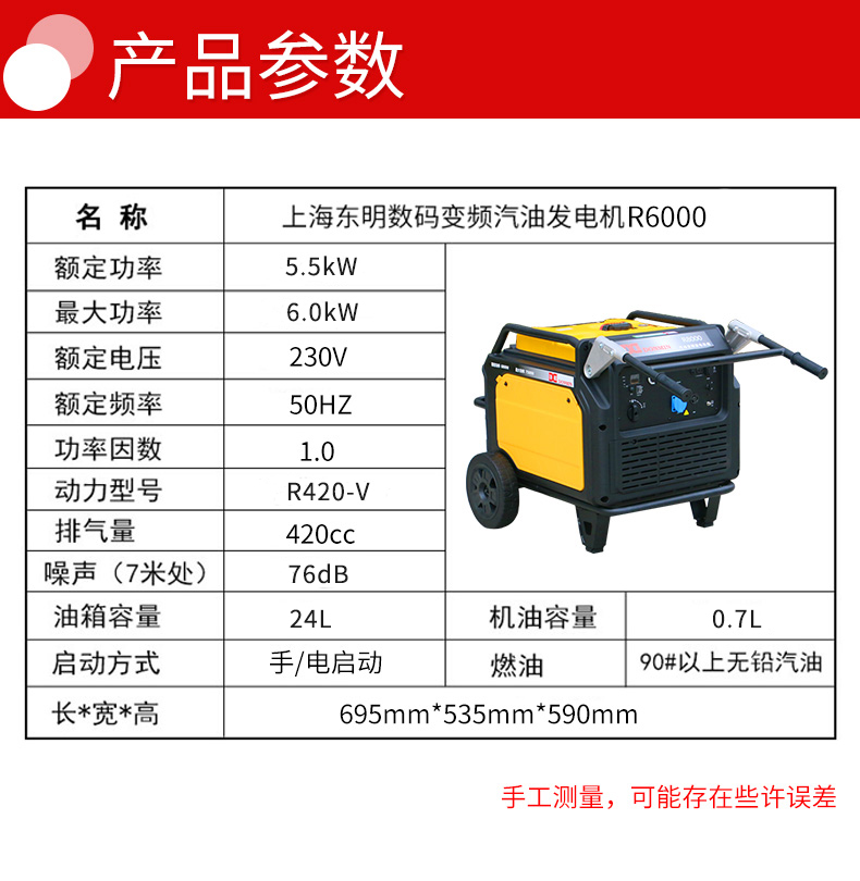 上海東明6KW 6000W手提式小型汽油發電機 R6000;
