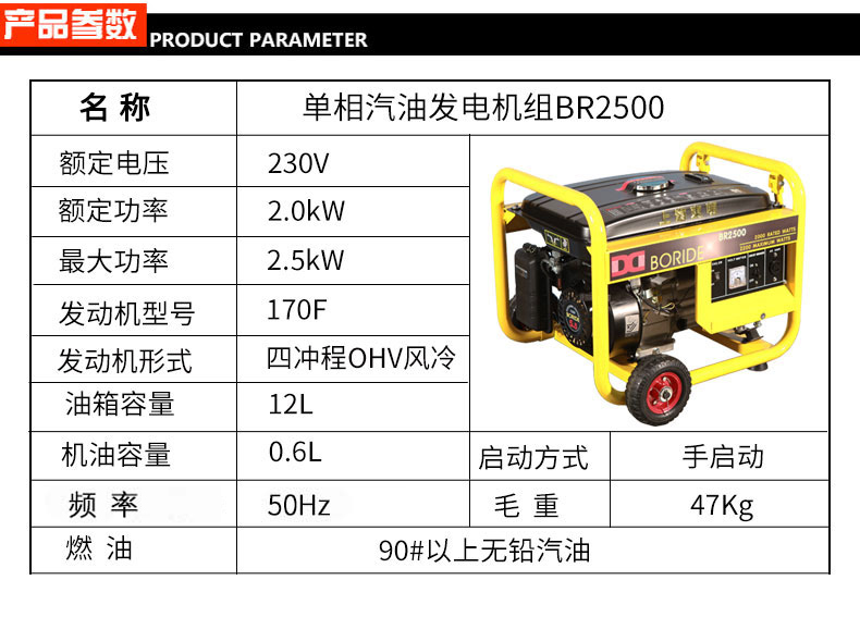 * 表示必填采購:單相2kW小型汽油發電機組BR2500