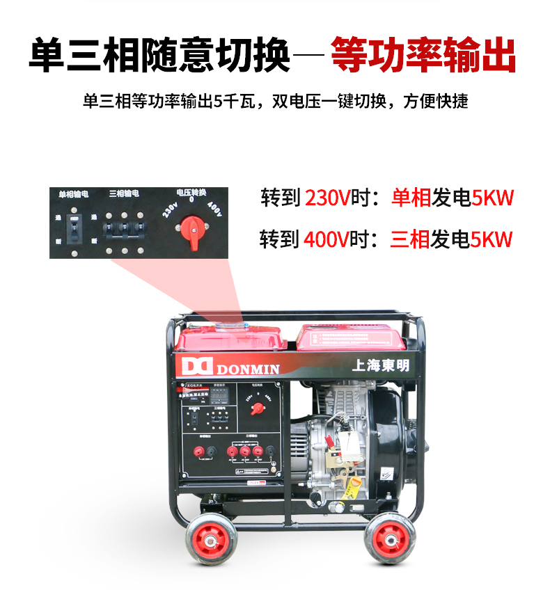 上海東明5KW單三相一體小型柴油發電機組 DMDS6500LE