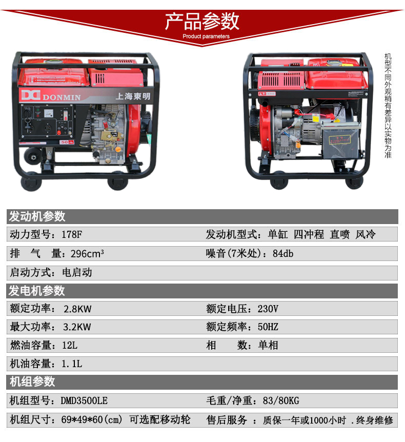 * 表示必填采購:單相柴油3KW發電機便攜式柴油發電機DMD3500LE